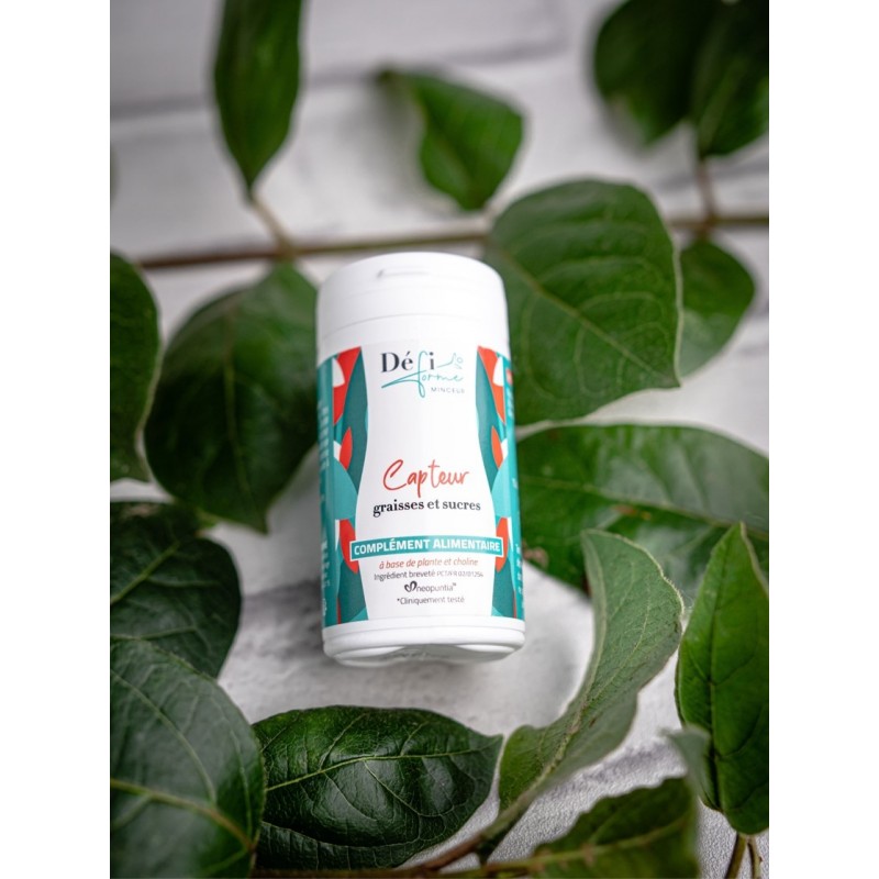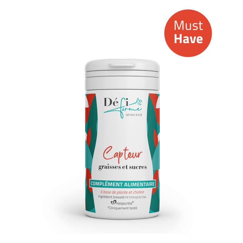 Le capteur graisses et sucres est formulé à base de Neopuntia™, une association brevetée de fibres alimentaires extraites du cactus (nopal - Opuntia ficus-indica) par un procédé 100% naturel. Ce cactus particulièrement riche en fibres est capable d’absorber jusqu'à 36 fois son poids en graisses. Le capteur graisses et sucres réduit l’apport calorique et aide à contrôler la glycémie (nopal). Il contribue également au métabolisme des graisses ce qui aide à stabiliser le poids corporel (nopal, choline).